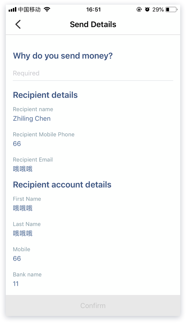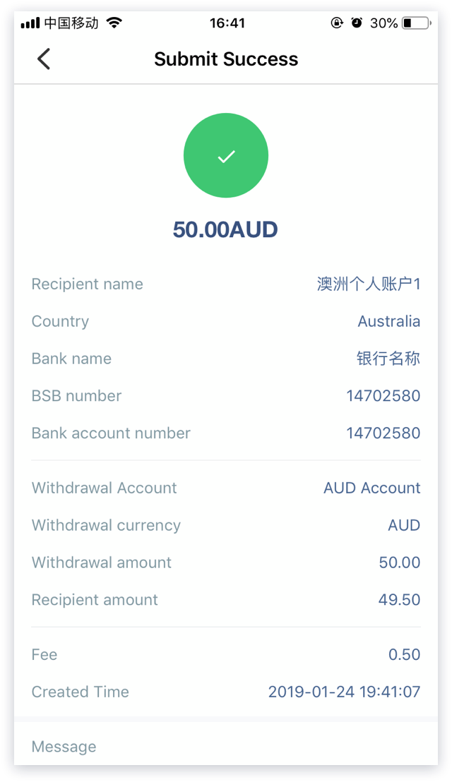 ——确认汇款信息无误后,即可提交汇款申请;汇款申请审核通过并完成处理后,即可查验银行到账信息,具体到账时间请以银行处理时间为准;