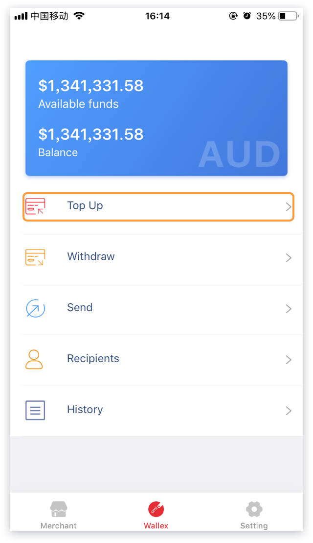 Top up:充值成功后,按充值金额记录一笔账户收入流水;