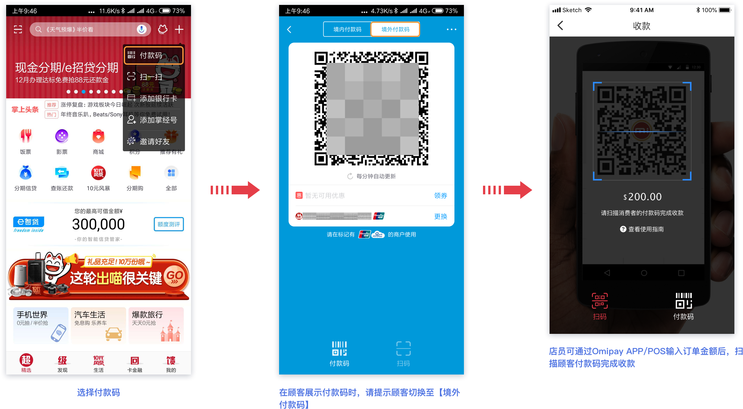 消费者在澳州境内以人民币支付商户,OmiPay 以澳币与商户结算;消费者在香港境内以人民币支付商户,OmiPay 以港币与商户结算。支付过程中将根据当日汇率扣除其微信或支付宝内等额的人民币金额,OmiPay 之后将会以澳币/港币为基准与商户进行结算,商户无需考虑汇率问题。